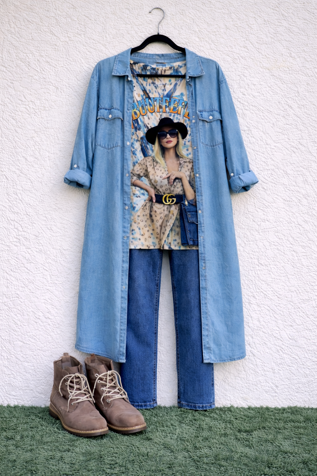 שמלת גינס חצי מכופתרת עם כיס אחד